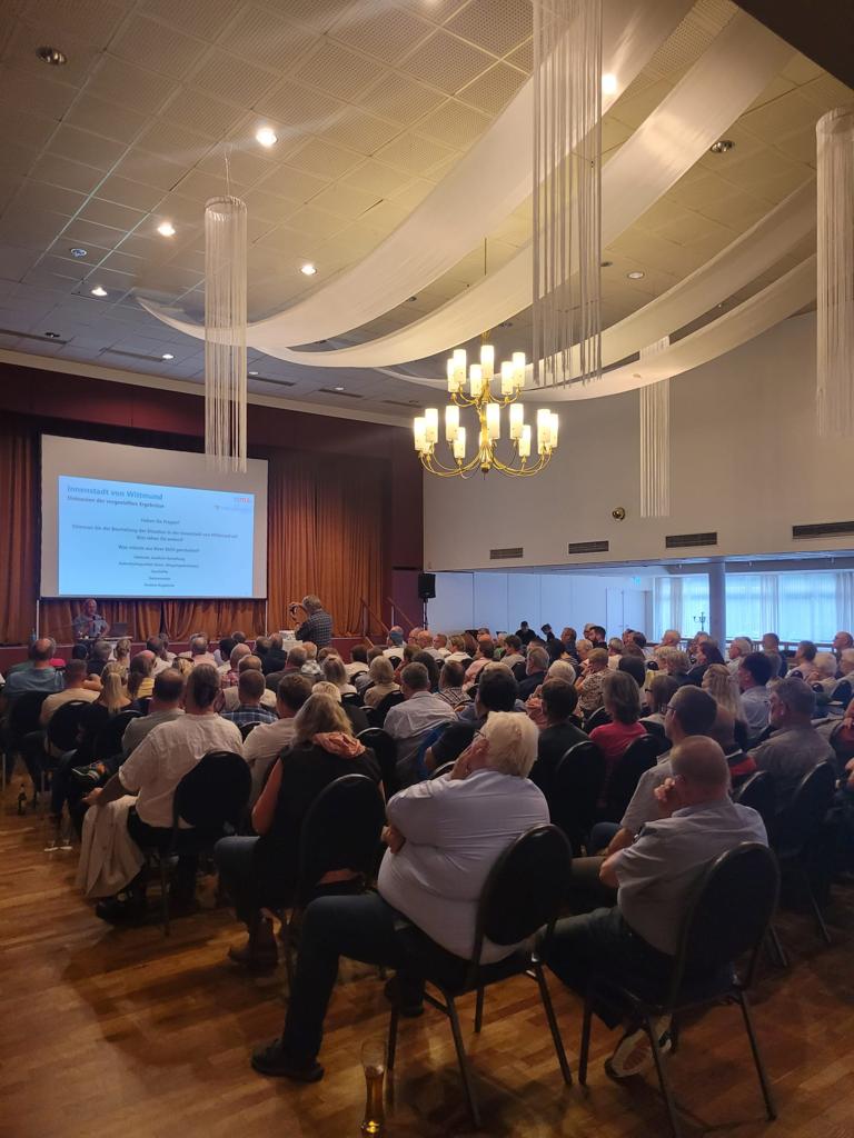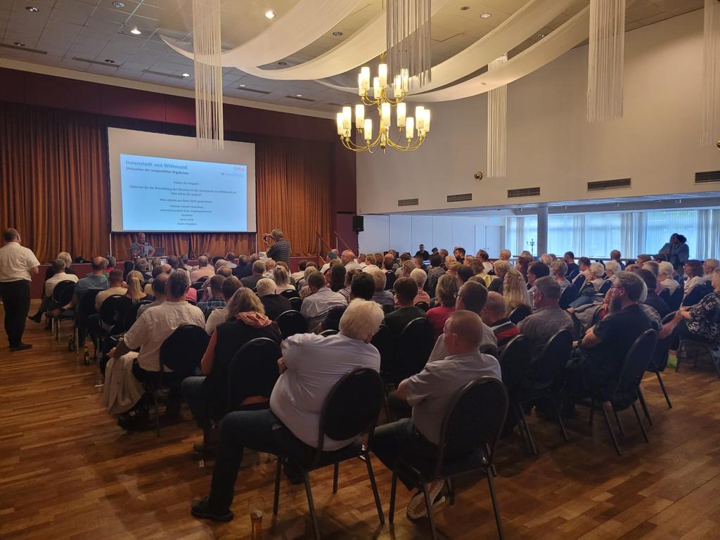 Am Montag, den 04. September 2023, fand in der Stadthalle Wittmund eine Bürgerversammlung zum Thema Wittmund upklütern statt, auf der über die Ergebnisse der bisher durchgeführten Analysen berichtet wurde und diese intensiv und engagiert diskutiert wurden.